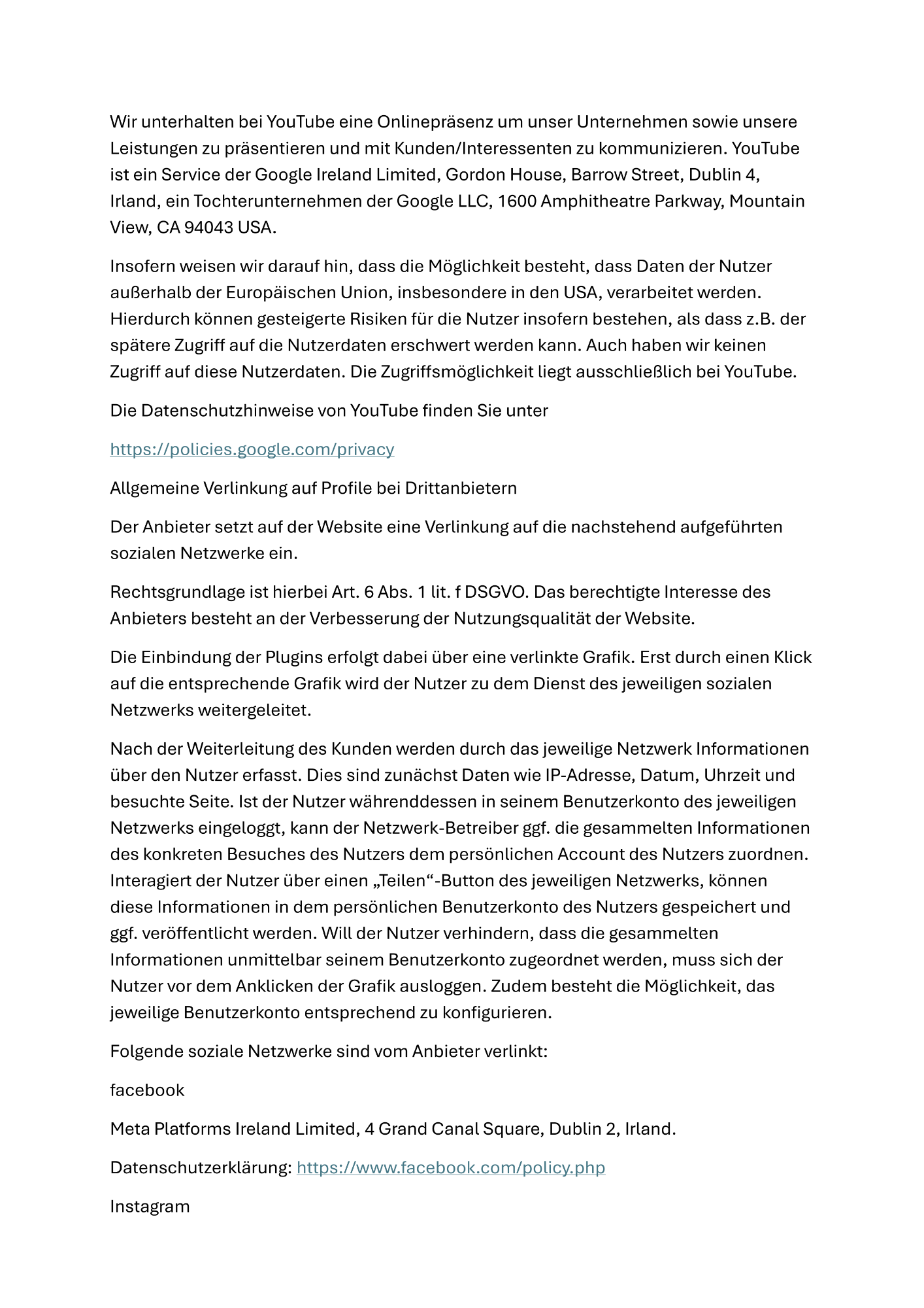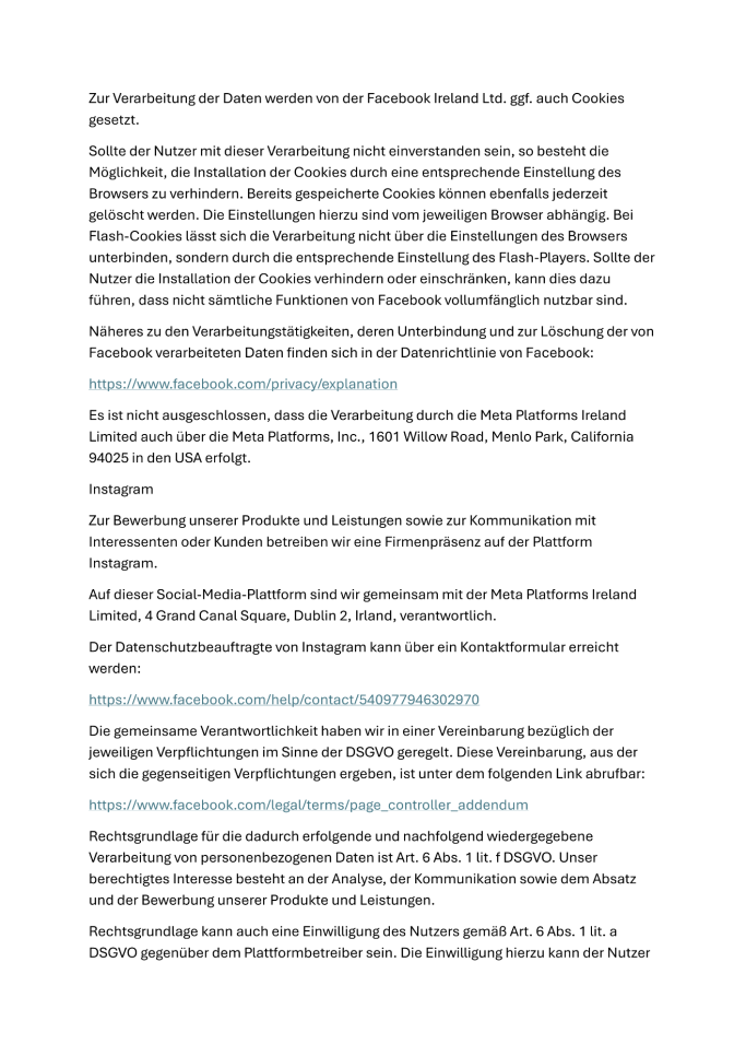 Zur Bewerbung unserer Produkte und Leistungen sowie zur Kommunikation mit Interessenten oder Kunden betreiben wir eine Firmenpräsenz auf der Plattform Instagram.