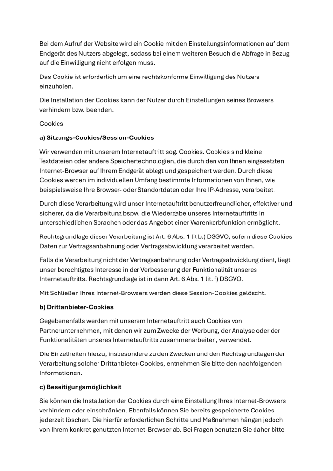 Die Einzelheiten hierzu, insbesondere zu den Zwecken und den Rechtsgrundlagen der Verarbeitung solcher Drittanbieter-Cookies, entnehmen Sie bitte den nachfolgenden Informationen.