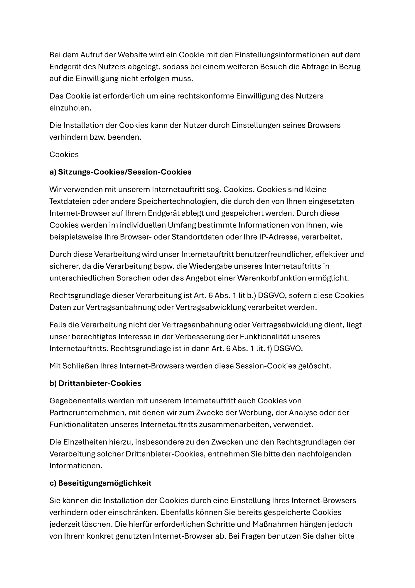 Rechtsgrundlage dieser Verarbeitung ist Art. 6 Abs. 1 lit b.) DSGVO, sofern diese Cookies Daten zur Vertragsanbahnung oder Vertragsabwicklung verarbeitet werden.