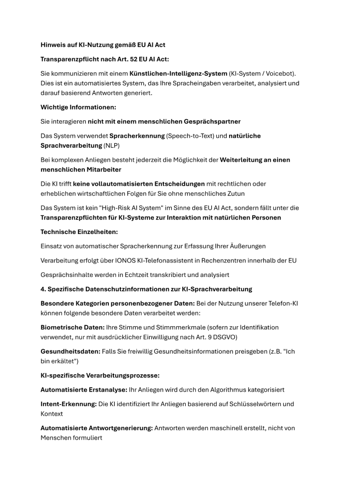 Verarbeitung erfolgt über IONOS KI-Telefonassistent in Rechenzentren innerhalb der EU