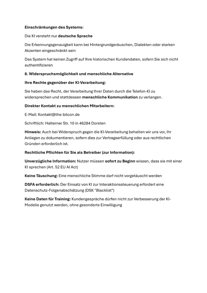 Sie haben das Recht, der Verarbeitung Ihrer Daten durch die Telefon-KI zu widersprechen und stattdessen menschliche Kommunikation zu verlangen.